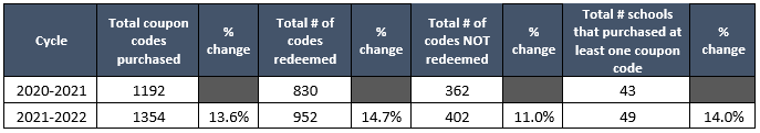 Please find below some frequently asked questions, best practices for schools who opt to use this optional service, and data points on coupon code use from the 2021-2022 (previous) PharmCAS cycle.